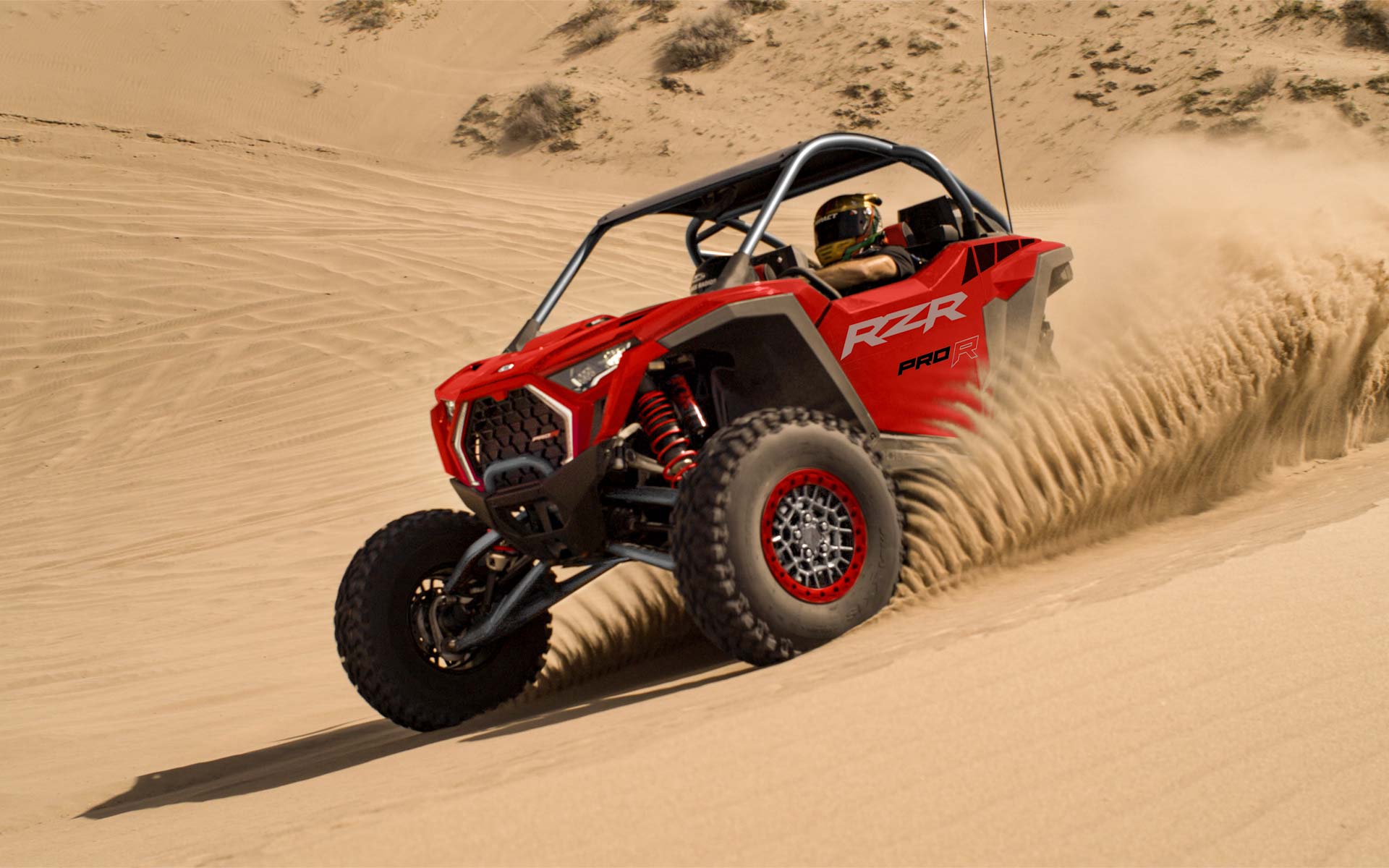 Surpreende todos com uma máquina off-road concebida para dominar. O RZR Pro R oferece desempenho de cortar a respiração para desafiar desertos, conquistar dunas e bater recordes fora de estrada. Nunca fiques em segundo lugar. Com o RZR Pro R, a vitória é sempre tua.