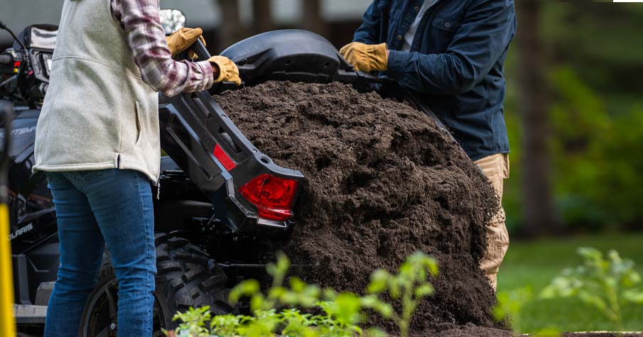 - Armazenamento seco dianteiro 5 gal (18,9 L), laterais da caixa de carga Lock & Ride e racks traseiros, calhas de amarração na caixa de carga