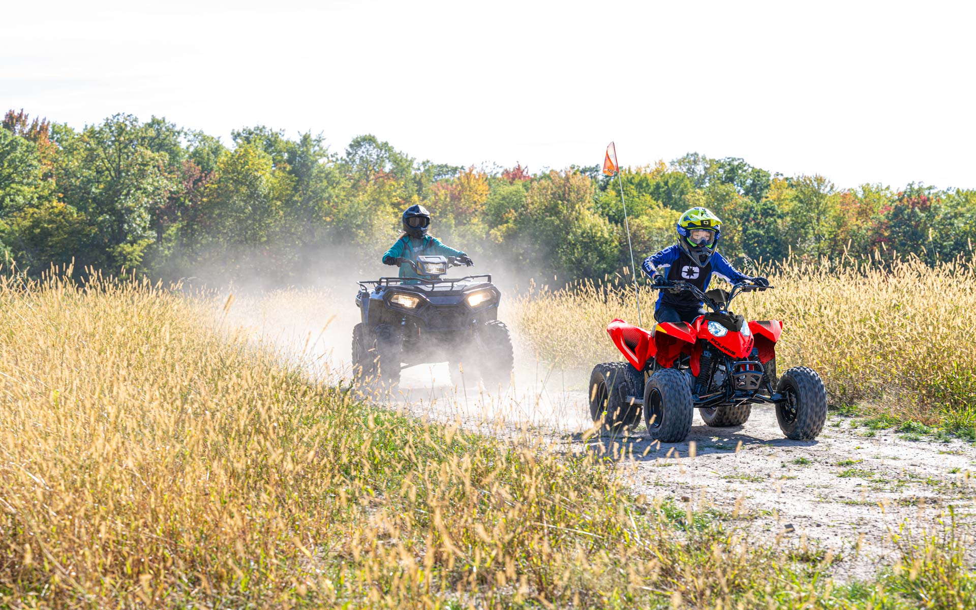 Com um motor EFI de 110 cc e acessórios para permitir aos jovens utilizadores crescerem com o seu ATV. Fabricado para utilizadores com 10 ou mais anos de idade.
