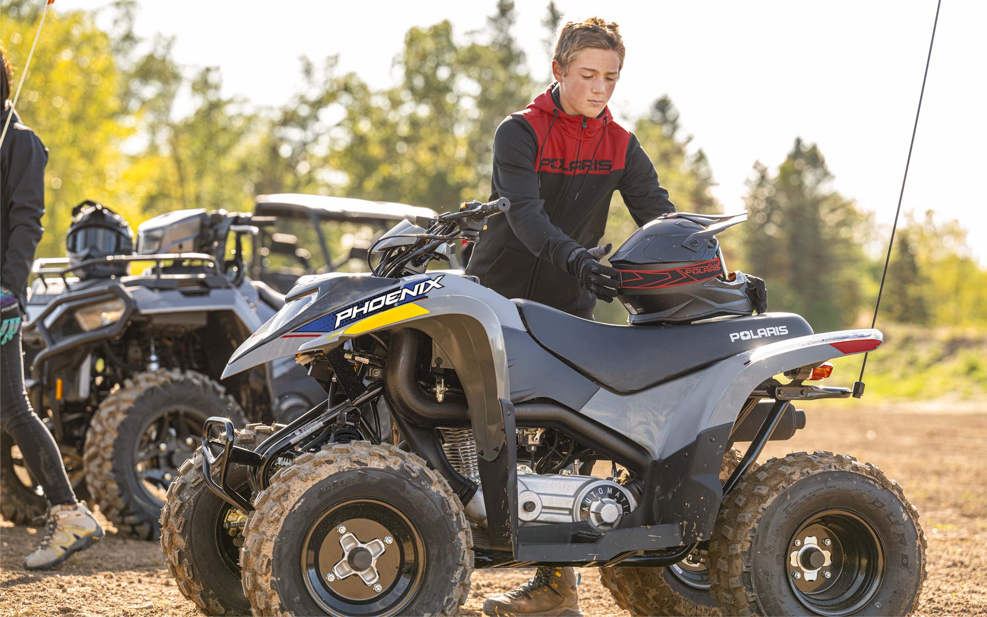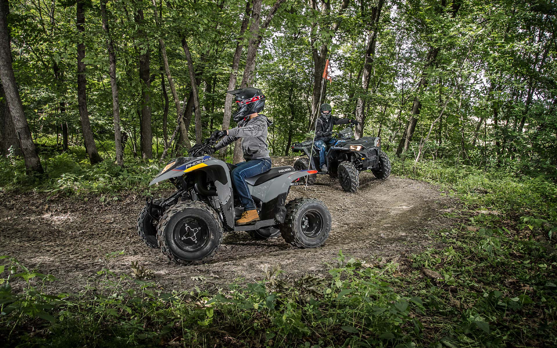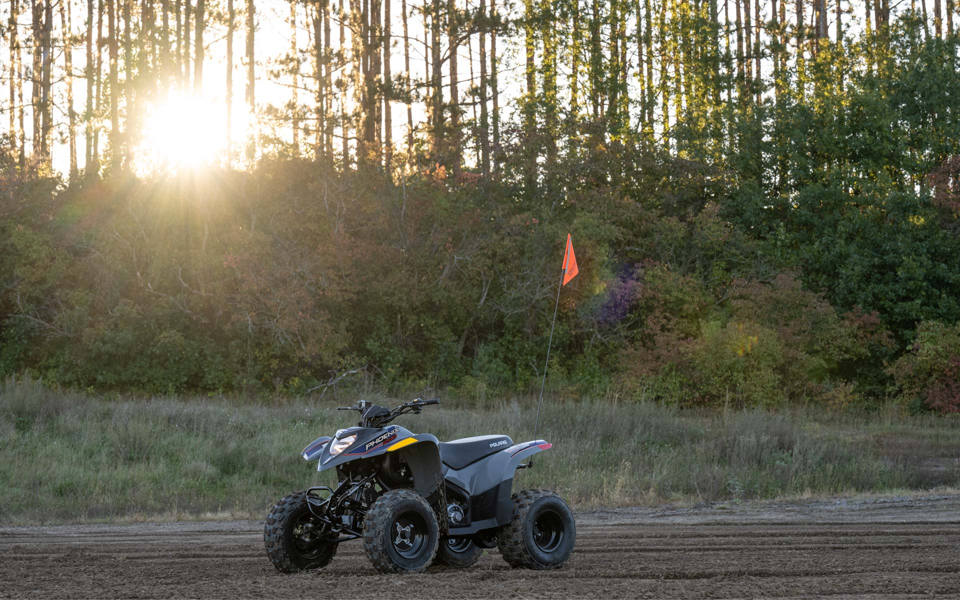 Com um motor a 4 tempos de 196 cc e limitador de velocidade facilmente ajustável, permite aos jovens utilizadores crescerem com o seu ATV. Fabricado para utilizadores com 14 ou mais anos de idade.